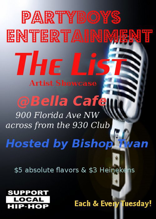 What up fam, things been kind of quiet lately, but I will be at “The List” tonight. Come through and enjoy the show.